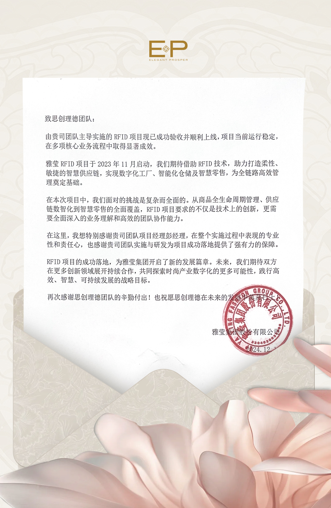 - 【一封來(lái)自雅瑩集團(tuán)的感謝信】