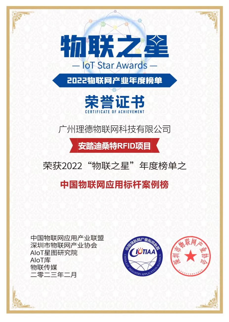 - 安踏迪桑特RFID項目|理德物聯(lián)網(wǎng)榮登2022 “物聯(lián)之星” 標桿案例榜