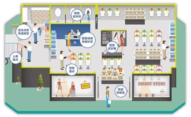 同時,通過物聯網和ReID跨鏡識別技術將顧客與商品之間的聯系進行數字化呈現,顧客拿起了哪些商品、試穿了其中哪部分,最終是否購買一目了然。配合貨架上的“小圓標簽”,可以實時記錄商品被顧客拿起的次數、拿起時長;通過試衣間的智能設備能夠記錄顧客的試衣情況;顧客有購買意向時,也可以直接通過RFID自助收銀臺買單。